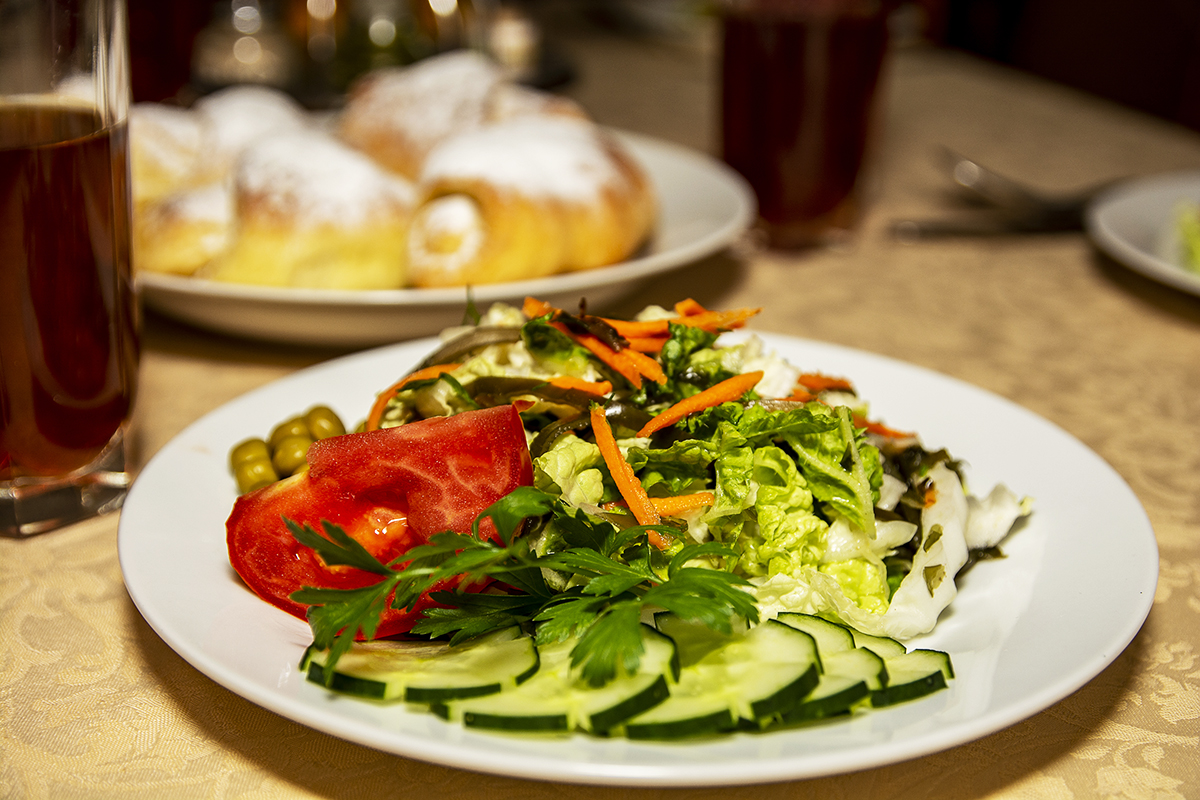 Интерьер обеденного зала, профессиональное оформление столов и блюд способствуют хорошему аппетиту и усвоению пищи. Круглогодично на столах гостей санатория присутствуют свежие овощи и фрукты. При приготовлении вкусных и сбалансированных блюде не используются усилители вкуса, транссжиры, консерванты и полуфабрикаты, а только свежайшие, натуральное эко-продукты местных фермеров.