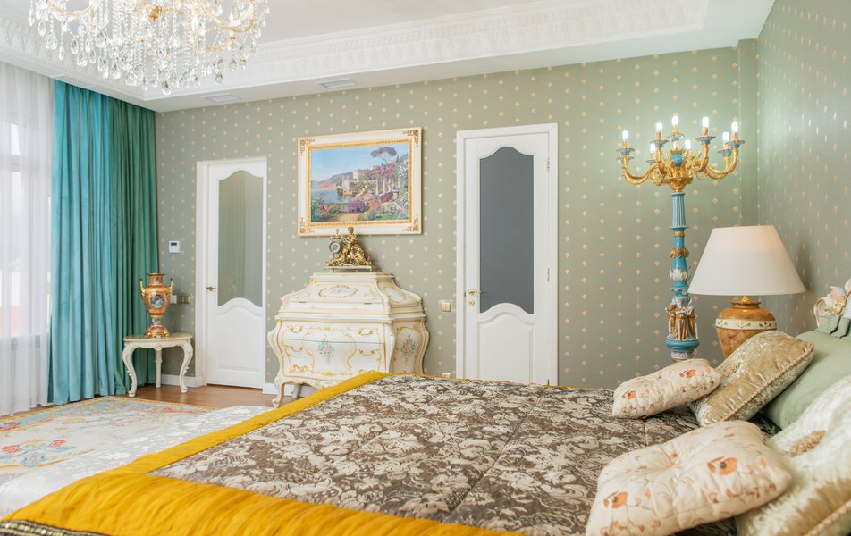 В номере: комод, кровать двуспальная, набор мягкой мебели, прикроватные тумбочки, диван, шкаф для посуды, кондиционер, телевизор, холодильник, электрочайник