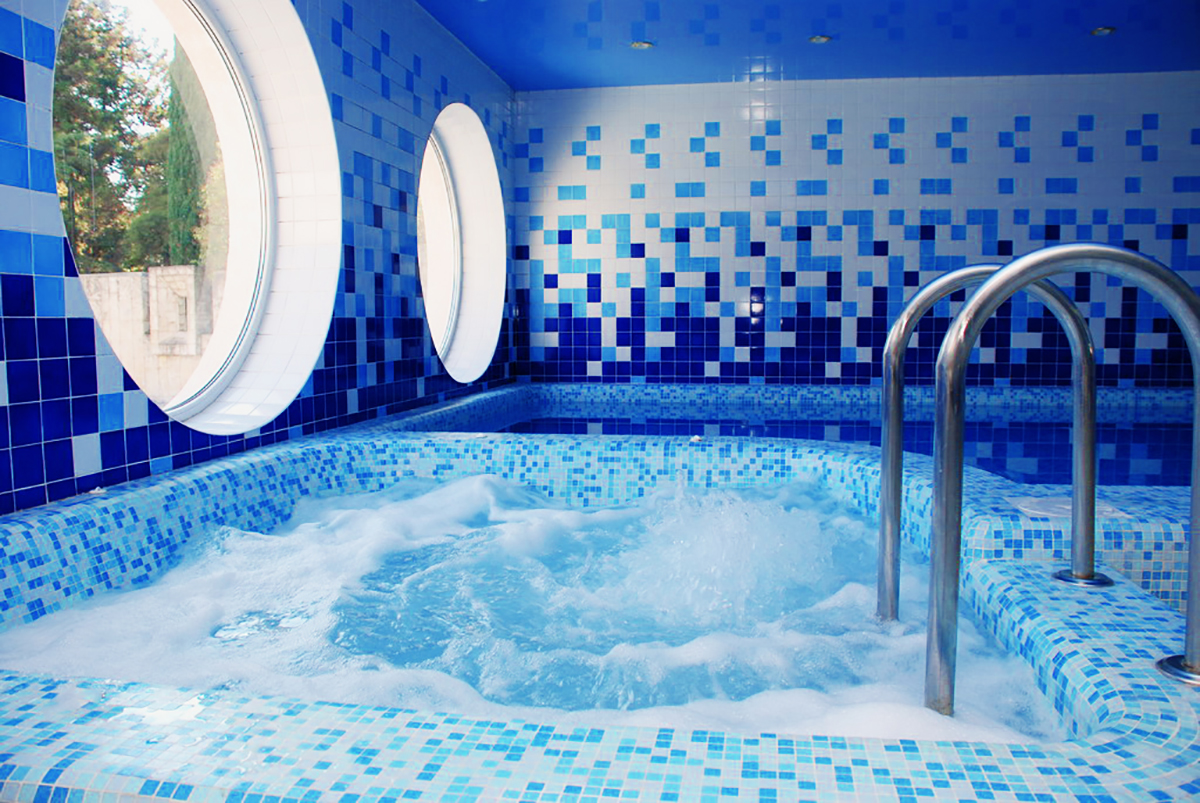 3) банный комплекс (2 сауны - финская парная и турецкая (хамам), фито бар, душевые кабинки, зона отдыха с джакузи и лежаками)